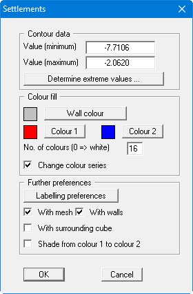The program interpolates the settlement values to be represented at the array points from the underlying triangle mesh. After leaving the dialog box by pressing "OK" you will see the following box: