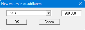 Selected foundation nodes can be subsequently assigned new values for stress, excavation unloading or foundation base. Define an anticlockwise quadrilateral enclosing the nodes to be edited. The following dialog box then opens: