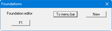 In the dialog box shown the first foundation ("F1" button) is already entered. Click the "New" button. You will then see the following dialog box: