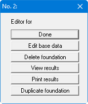 After clicking the "Edit base data" button the data for the second foundation can be edited in accordance with Table 4. Descriptions of the remaining buttons can be found in Section “Define" menu item”.