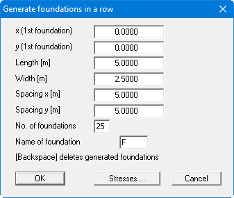 You can generate several foundations of equal dimensions in a row. The following dialog box opens: