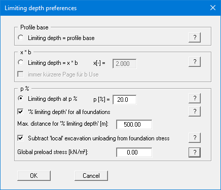 The settlements are calculated to a depth of x * foundation width, but not deeper than the profile base."Limiting depth at p %"