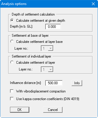 By activating this check box the kappa correction coefficients compliant with DIN 4019 Table 1 can be adopted for settlement analysis.