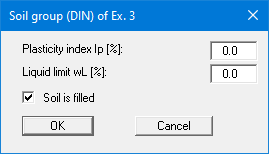 The coefficient of plasticity IP and the liquid limit wL must be provided for cohesive soils in order to identify the soil group to DIN 18196 (see the following dialog box). Otherwise, nothing will be displayed in the diagram table on the output form.