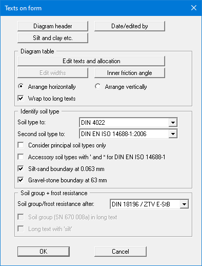 If this button is pressed the headings of the grain size distribution diagram and the "Remarks" element can be altered.