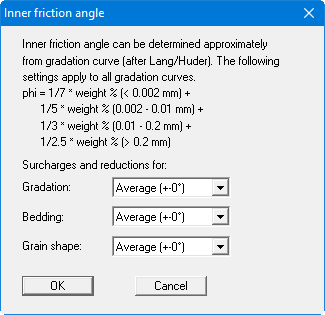 If the program is to estimate the inner friction angle, surcharges and reductions can be taken into consideration here: