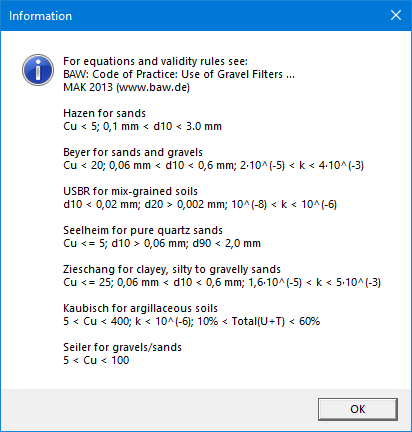 The kf value is determined in accordance with the Merkblatt Anwendung von Kornfiltern an Bundeswasserstraßen (MAK) (Fact Sheet for the Application of Grain Filters on Waterways), published by the Bundesanstalt für Wasserbau (BAW) in Karlsruhe (2013).