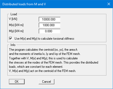 The distributed loads can be calculated from M and V by the program. The moments can be adopted to calculate the torsional stiffness.