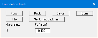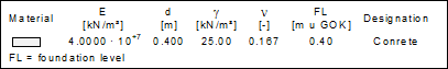 You can define foundation levels for each material or accept the mean value using the "Set to slab thickness" button. If you have set a foundation level here, this will be inserted in the legend of the slab material as an additional column.