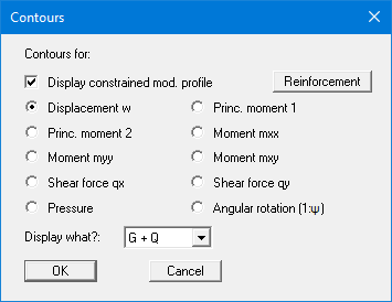 The angular rotation is the inclination of slab displacement and can be used to assess allowable angular rotations. In addition to the required state variable, decide whether the display should include permanent (G) and/or live loads (Q).