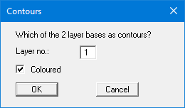 This menu item serves as a check for the layer depth input data. Enter the number of the layer for which you would like to see a contour diagram of the base. If you activate the "Coloured" check box, you will see a colour filled contour diagram. Otherwise, a normal contour diagram will be drawn.