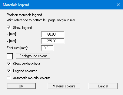 The materials are assigned colours automatically by the program. If the check box is not selected, the colours individually defined using the "Material colours" button will be adopted."Material colours"