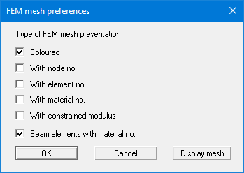 Using this menu item, you can define the appearance of the FEM mesh on the screen. The element no. and the material no. cannot be displayed simultaneously.