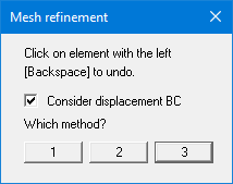 Upon activating the "Consider displacement BC" check box, new nodes located immediately between two nodes with displacement boundary conditions will be assigned the average of the two values. This procedure is not unequivocal when applied to action boundary conditions and can lead to misunderstandings. Action boundary conditions are therefore not refined during mesh refinement.