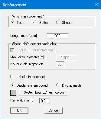 The reinforcement is displayed as lines according to direction and size. Shear reinforcement can also be displayed as a circle diagram; otherwise, the numerical values are displayed.