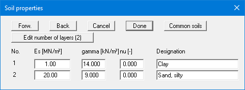 Enter the values given in the dialog box. In this case "nu" represents the Poisson's ratio of the soil.