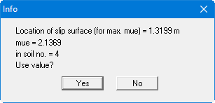 If you click "Yes" the position of the slip surface is adopted in the "System parameters" dialog box and drawn in the system visualisation at the identified depth.