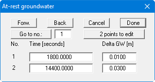 First, enter the number of value pairs you need to enter using "x points to edit". In the list that follows this you can enter the time and corresponding groundwater level.