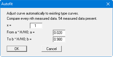 Before you can perform an "Autofit 1" you must specify in a dialog window which nth data points of the data curve are to be compared to the type curves. Normally, you can work with the default setting "x = 1", i.e. every data point is included in the comparison. You can reduce the number of data points for very large datasets, by entering 10, for example. This makes things a little faster.