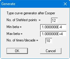 Once you have specified all preferences and concluded input with "OK", a further dialog box opens with the heading "Type curve generator after Cooper" (the name corresponds to the evaluation model selected).