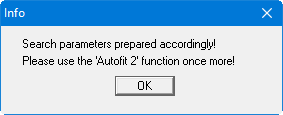 Once you have entered all the required values, close the window with "OK" and "Autofit 2" finds an optimum type curve. You can follow the variation of the type curve parameter in the status bar at the bottom of the program window. After computation of the optimum type curve an info box opens showing the found optimum type curve parameter and the maximum absolute deviation between the type curve and the measured data. After confirming with "OK" you are asked whether the type curve parameter should be further delineated.