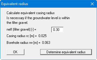You can view the new value for the casing radius rc by pressing the "Determine equivalent radius" button.