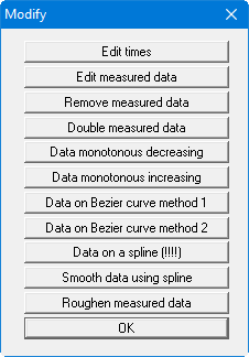 These actions directly alter your measured data. No "undo" is available for any actions with the exception of "Edit times" and "Edit measured data", i.e. you cannot reset any of the editing performed on the data.