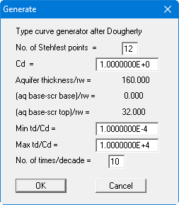 In the DOUGHERTY model you must know the well and aquifer geometry, beside input of the previously mentioned parameters, or at least enter plausible estimates. You should have the following parameters ready: