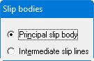 Activate the "Principal slip body" switch if you would like to define the main slip surfaces of the failure body. You then proceed in complete analogy to the above described actions. For each new main slip body point, the program automatically assign a vertical intermediate slip surface. Then activate the "Intermediate slip lines" switch in order to define the position of the intermediate slip line with the mouse.