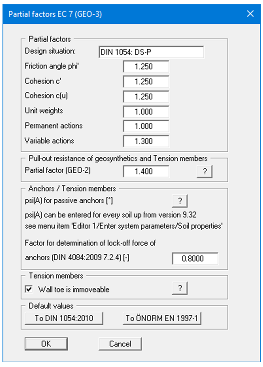 Accordingly, the examples also include these different partial factors. The partial factors for friction angle and cohesion are the same in the new DIN 4084:2009.