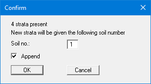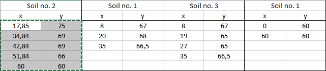 For contiguous soil layers the end point of the first line is automatically adopted as the start point of the new line. When reading in coordinate pairs a dialog box shows how many layers are defined. You also assign the soil number here, so that the soil properties are defined for this soil layer.