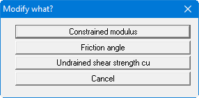 To visualise the constrained modulus diagram, activate the "Show constrained modulus" check box. Two options are available for determining the constrained modulus: