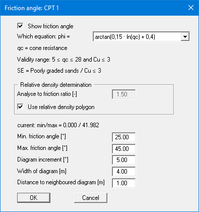 In addition, you can have the friction angle displayed. Different equations are available to determine phi.