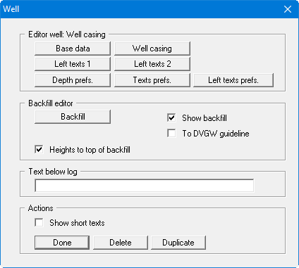 By clicking the button labelled with the designation (here: Well casing) you can edit the data for the corresponding well.