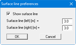 A horizontal surface line can be displayed to the right and left of the stratigraphic logs and wells, mainly to optically enhance the drawing. In this menu item, you can determine whether or not a surface line should be displayed and the width of the line.
