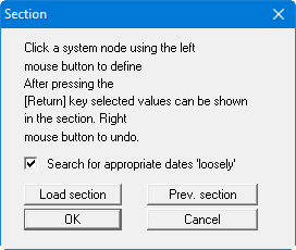 By clicking on "Load section" it is possible to load a section course saved during a previous session. If you have already defined a section during the current session, you can reload this section using the "Prev. section" button. In both cases the section course is first displayed on the screen and must be confirmed by pressing the [Return] or [Enter] key.