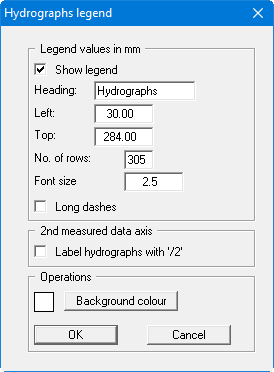 When visualising hydrographs a descriptive legend can be displayed with the allocations for lines and markers to the hydrographs of the selected data. The position and appearance of the legend can be modified if the "Show legend" check box in this menu item's dialog box is activated.