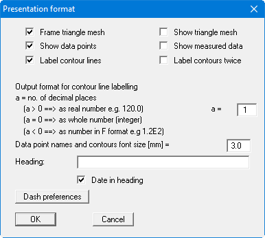 In the dialog box you can specify preferences for the type of presentation and for contour line labelling.