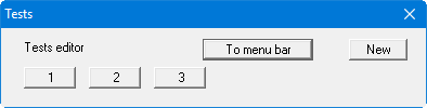 Three tests are already present in this example. The tests are automatically numbered and the test numbers ("1, 2, 3, ...") shown on the respective buttons. The following actions are possible: