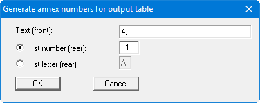 You can manually enter the desired annex numbers for the output tables or have them generated by the program using the "Generate" button. Make the following entries to get the numbering shown above: