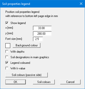 A legend with the soil properties of the individual layers will be displayed on your output sheet. If you have activated the "Show legend" check box, you can alter the type of visualisation using the dialog box of this menu item.