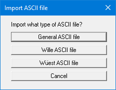 Using this menu item, the measured data can be imported from a file in standard ASCII format. In addition, ASCII data in the file formats of the apparatus manufacturers Wille and Wüest can be imported.