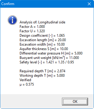 With this menu item you can begin calculating the system. First, a plausibility check of the input data will be carried out. If necessary, you will see an error message, with an appropriate note on corrections. Then a dialog box with the analysis results appears, shown below for a 'classical' analysis: