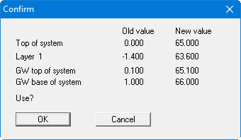 Once you have confirmed your input you will next be presented with a query on how to deal with the existing elevation data for soil strata and groundwater. If you leave the elevations at the same level (= check boxes activated), the originally entered data will not be modified.