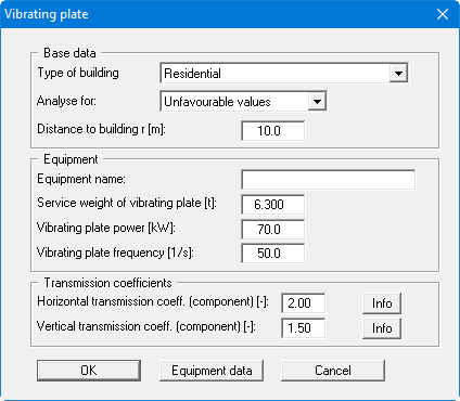 The input corresponds to the input for vibrating pile drivers. However, in addition to power and frequency the service weight of the vibrating plate must be given.