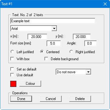 If you need to change the font of an existing text the new font can be selected from the upper drop-down combo box. If the required font is not listed, it must first be opened in the Mini-CAD system via the "Font" icon (see Section “Mini-CAD: Defining fonts”).
