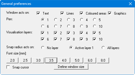 Preferences can be quickly edited using this box, which would otherwise need to be opened via various menu items. Accept the preferences by pressing [Return] or one of the font size buttons or "Define window size".