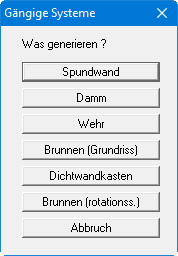 GGU-2D-SSFLOW: Menüeintrag "Gängige Systeme"