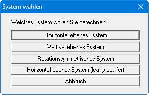 GGU-2D-SSFLOW: Schritt 1: Grundwassersystem wählen (Beispiel 1)