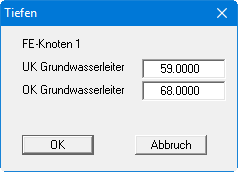 (Oberkante Grundwasserleiter) und UKGwl (Unterkante Grundwasserleiter) zuzuweisen. Klicken Sie den linken unteren Knoten doppelt an und geben Sie vereinbarungsgemäß folgende Werte ein:
